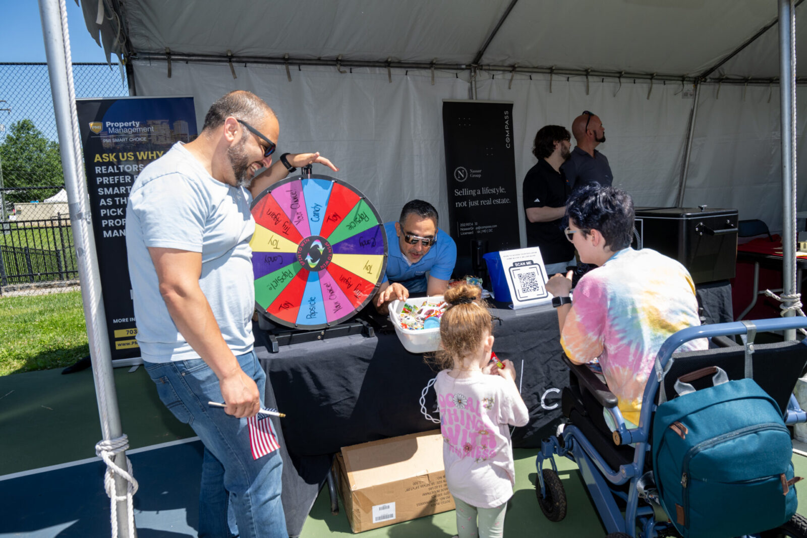 Marketplace: Under several long 10’-deep common tents with back wall only (no side walls.) 10’x10’ space with back wall (Includes one (1) 3’x8’table and 2 chairs). Maximum of 4 booth workers allowed in tent per shift. $245 $125